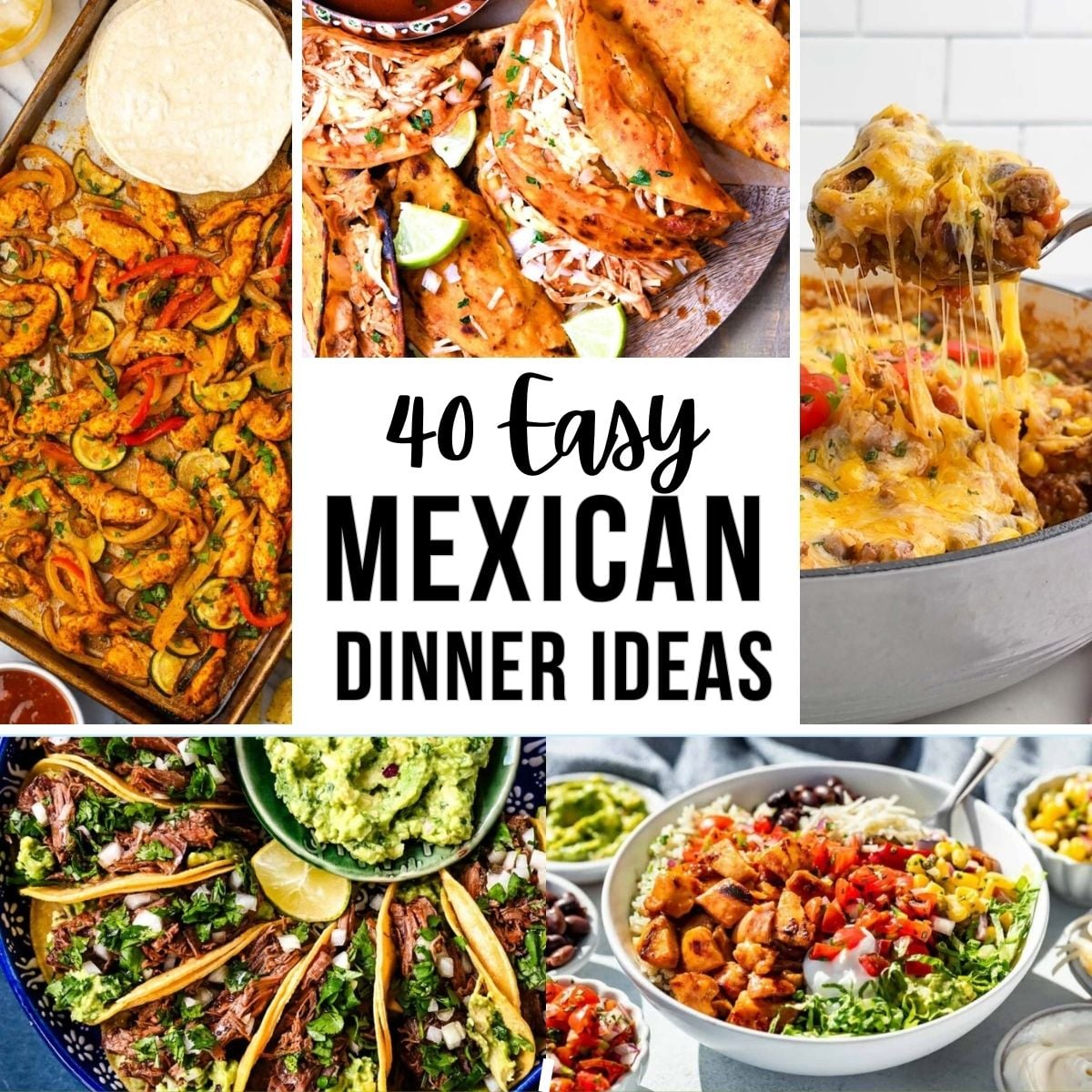 Craving Mexican food? This list of 40 Mexican dinner ideas has fajitas, tacos, nachos, enchiladas, pizza, casseroles, and more. Whether you want an easy recipe for dinner tonight, something quick for Taco Tuesday, or a cozy baked dish for the weekend, you'll find plenty of easy, delicious recipes.