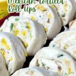 Mexican Tortilla Roll Ups with charred corn, green onions, jalapeño, lime, and seasoned cream cheese have all the flavors of street corn rolled into soft flour tortillas. They come together with simple ingredients and just a few minutes of prep time. A delicious and easy appetizer for your next gathering or special occasion. Be sure to bring plenty, they go fast!