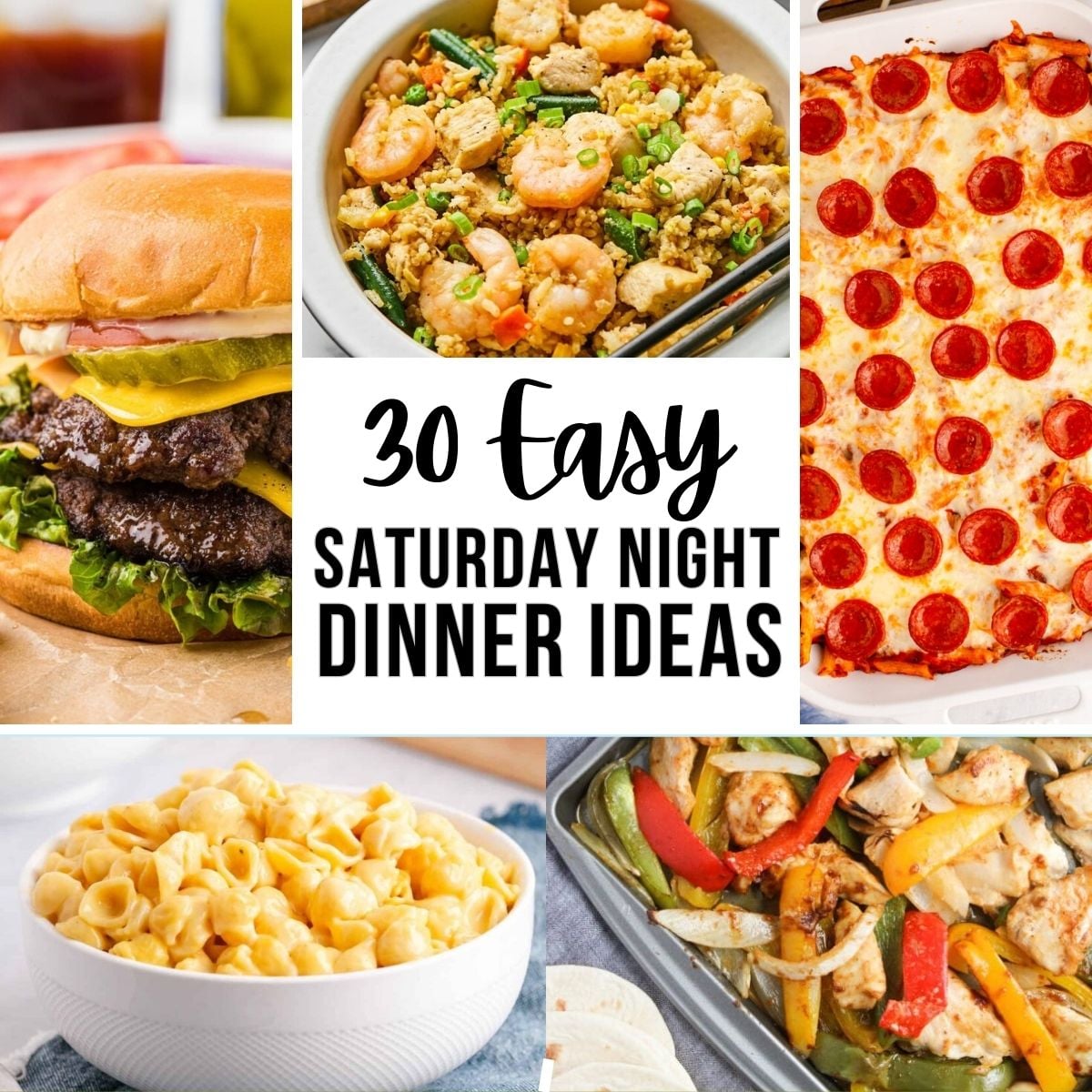 Looking for easy dinner ideas for Saturday nights? This list of 30 Saturday Night Dinner Ideas includes comfort food classics like chicken pot pie and ribs, along with takeout favorites like burrito bowls and pizza, plus plenty of quick, family-friendly recipes to make your Saturday night delicious and stress-free.