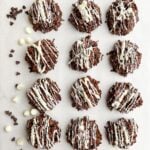 Mocha Chocolate Chip Macaroons with white chocolate drizzle are soft and chewy, with a hint of espresso and chock-full of chocolate chips. Fast, easy cookie recipe!